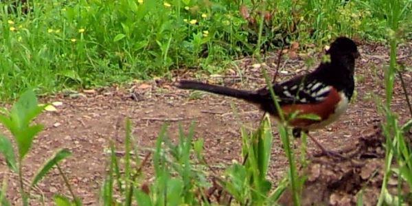 I seeded a new berm with native wildflower seeds and the birds loved it - Phacelia, Amsinckia, Collinsia...